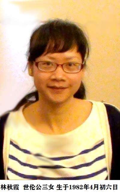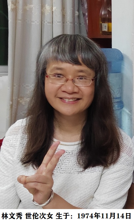 林文秀 二女 于1974年11月14日寅时出生,嫁县邮电局曾建伟为妻,生一子;曾志轩