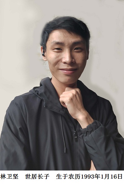 林卫坚 世居长子 于1993年1月16日寅时出生