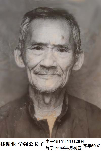 林超业 学强公长子 生于1915年11月29日,终于1994年5月初5日;享年:80岁。
