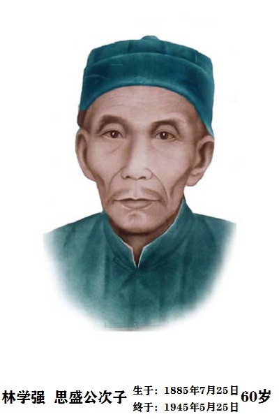 林学强:字 刚尚,思盛公次子,生于1885年7月25日,终于1945年5月25日辰时,