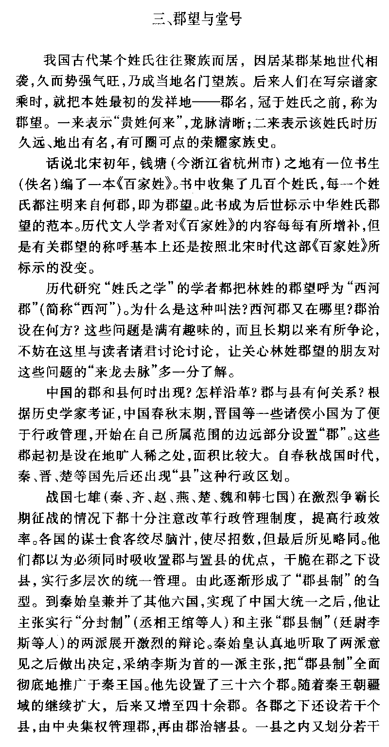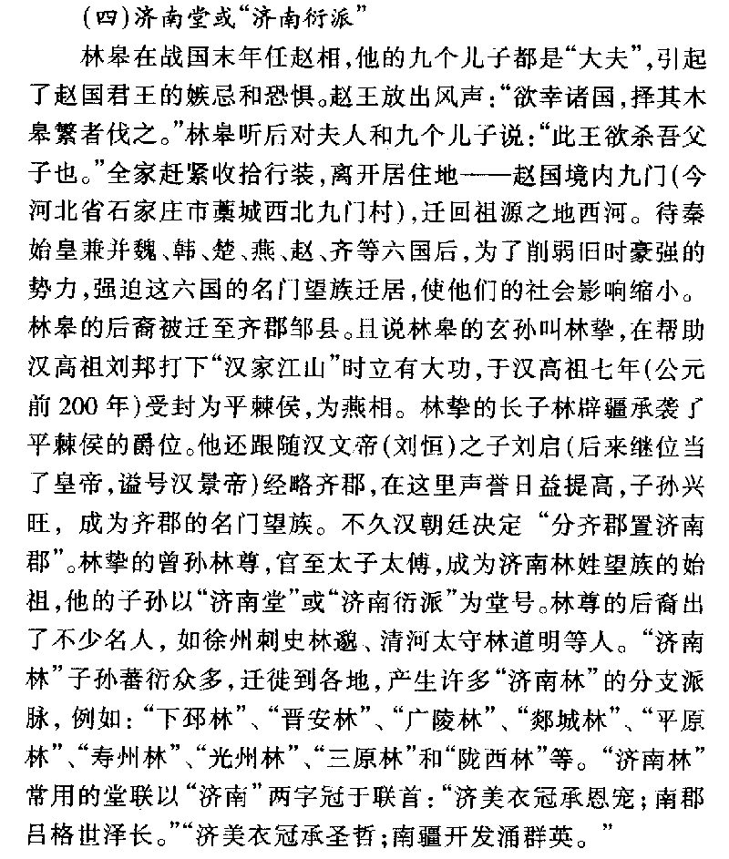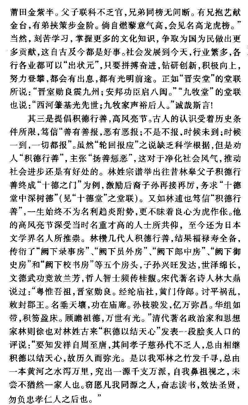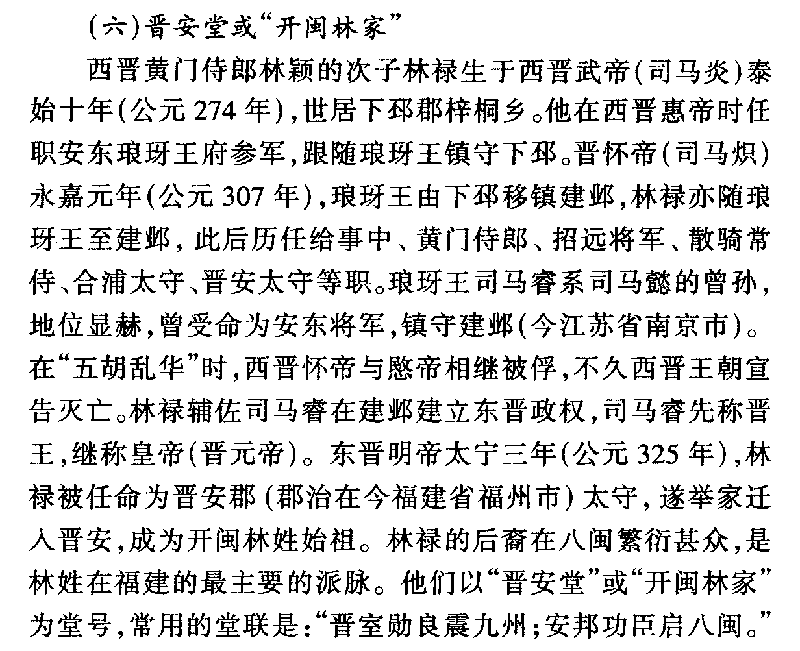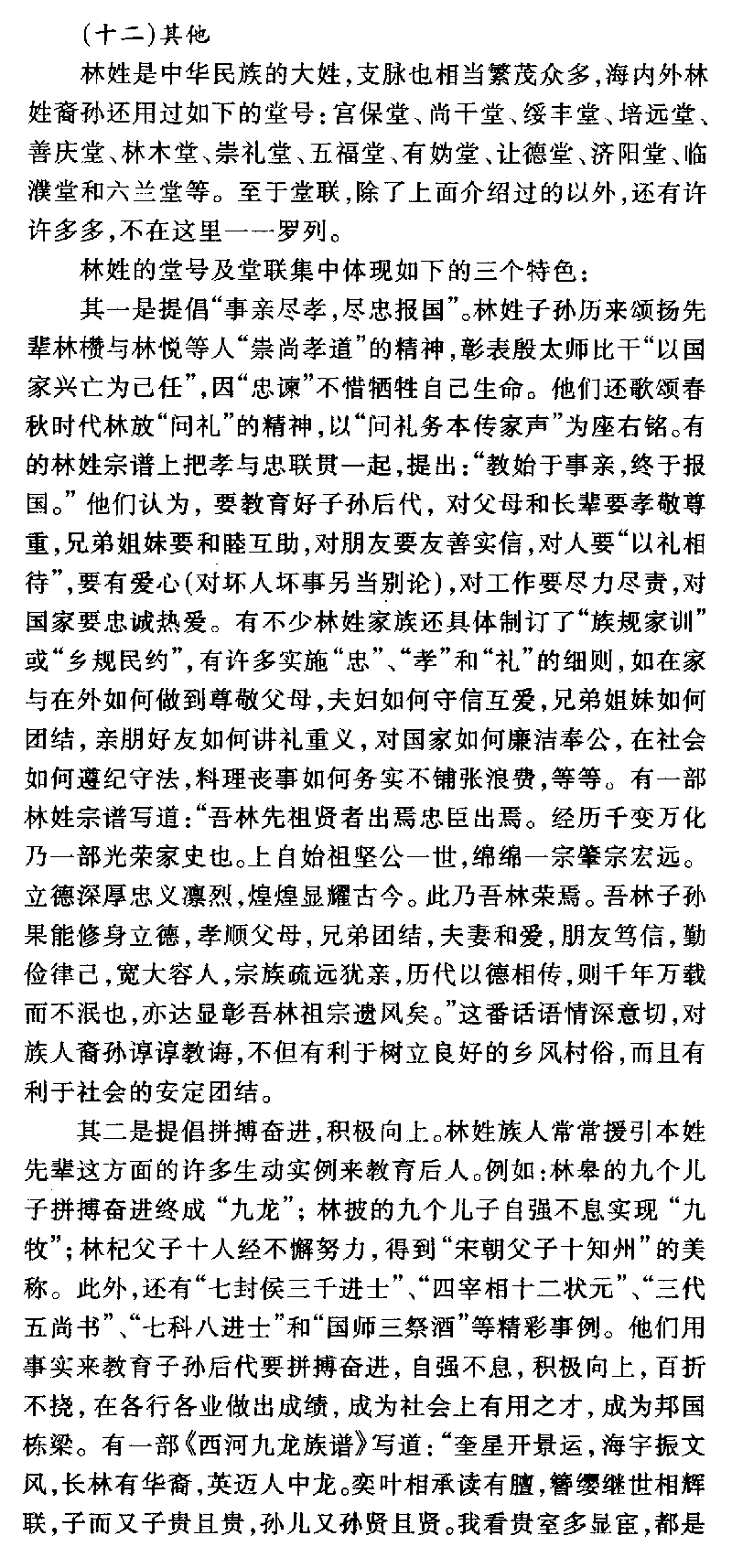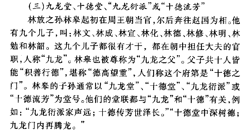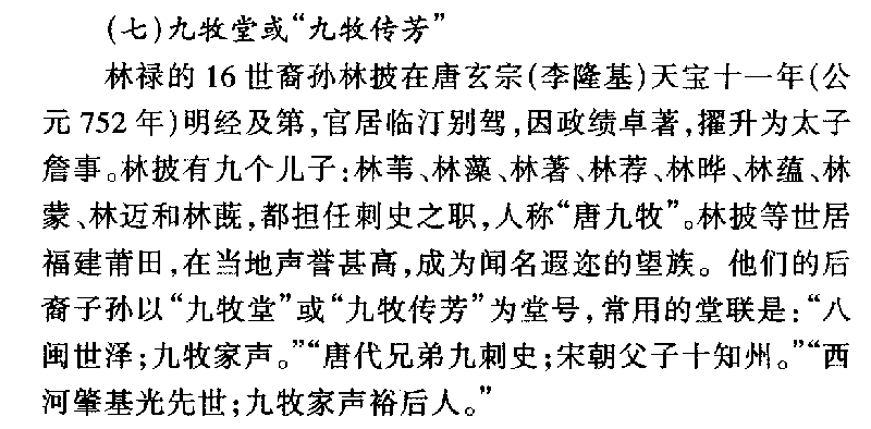 除了郡望以外,本节还对林姓的堂号与堂联作些介绍