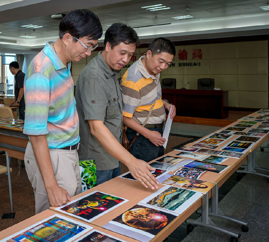 艺术类铜奖《窥》——梁翠群摄影< 艺术类铜奖《峰林晨雾》——屈云广摄影 艺术类铜奖《烟雨上岳》——黄超贤摄影 二、记录类:记录类金奖《赶集去》(组照)——叶灿新摄影 记录类银奖《百姓中国梦》(组照)——李永浩摄影 记录类银奖《上灯豆腐节》(组照)——黄超贤摄影< 记录类铜奖《茶香满园》(组照)——陈卫东摄影 记录类铜奖《瑶家公爹》——黄文跃摄影 记录类铜奖《阳山5.22抗洪救灾》(组照)——何东成摄影 < < < < < 三、创意类:创意类金奖《星河泛舟》——黄文跃摄影 创意类银奖《城镇化》——-罗秋明摄影 创意类铜奖《吹奏幸福来》——邓建平摄影< 【 本次获奖及入选作品将于2014年11月22日至12月22日在第十届连州国际摄影年展中展出。】 【评选现场】