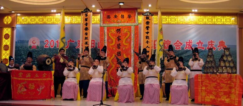 2012年10月8日,应阳山县何氏宗亲会的邀请,何家营鼓乐社社长何忠信、西安鼓乐协会秘书长张昭率社员共十八人,回乡寻亲问祖。次日,到七拱何昌期墓遗址、青莲尚书祠进行拜祭。10日,在阳山县何氏宗亲会成立大会上,何家营鼓乐社演奏唐代宫廷鼓乐。盛唐遗音响起,仿若云霄天籁。时而典雅悠扬,时而热烈奔放的奏乐声中,从头到尾博得观众阵阵欢呼声和掌声。世界非物质文化遗产的民间艺术精品,果然名不虚传。
