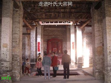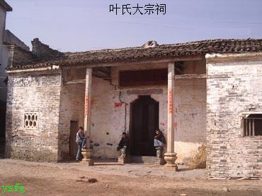 叶氏大宗祠,座北向南,三开间,三进两天井,建筑面积三百六十平方米。系纪念开基祖、百户长叶元青而修建的宗祠,也是村中最大规模的建筑物。乾隆廿五年(1760)重修。系县内保存最早的宗祠。今为县级文保单位。大门前有两蹲狮子负石鼓,石鼓两面刻有云鹤、花草图案,石门槛刻卷云纹,门框顶正中刻有双鱼太极图,门楣外侧刻双凤朝阳人物图。祠内的廊厅宽敞明亮,颇有气派。