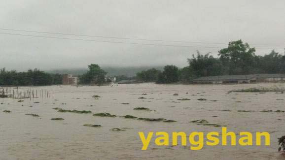 昨天,阳山县遭遇强降雨,导致山洪暴发,河水暴涨,一些路段出现塌方情况,一些乡镇、村庄被山洪淹没,大部分农田被毁,很多地方断水断电,很多群众甚至晚上无法做饭吃。