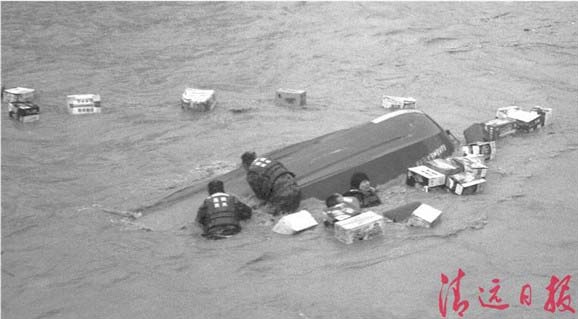 昨日,太平镇湖洞村附近某矿区仍被洪水淹没,工人刘家梁和其它3个工友自制了两只木筏,打算划水离开洪水区。中午12时许,4人在洪水中漂泊了1个多小时,疲惫的刘家梁不慎跌落水中,由于不懂水性拼命挣扎。一艘运送救灾物资的冲锋舟途经,迅速靠近,官兵合力将其救上舟中。"非常感谢你们。"救离上舟的刘家梁浑身湿透,感激地说。