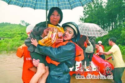 “5·22”特大暴雨到今天已经进入第七天。从27日开始,暴雨渐歇,灾情趋缓。但是由于连日特大暴雨,阳山县下辖太平镇白莲、大清、湖洞3个村(下称“白莲片”)目前形成约2.1平方公里的积水面积,约4000人被洪水围困。据介绍,被水围困的3个村委会位于太平镇西南部,有51个村小组,共有1457户人家,总人口5789人。至5月25日部分公路抢修通车后,县、镇立即组织4条冲锋舟、30台车辆、100多人到白莲片开展抢险救灾工作,共转移1000多名群众到安全地带。
