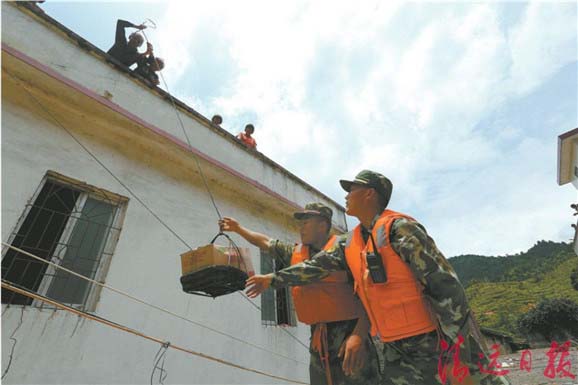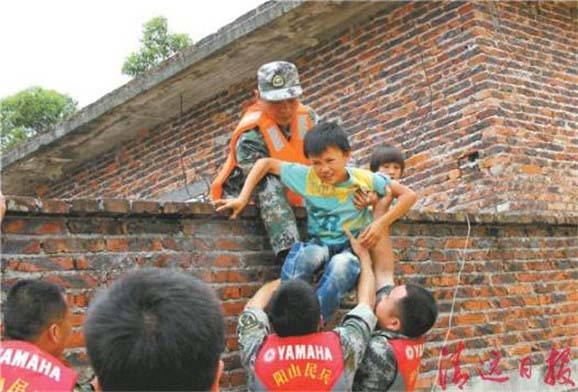 25日凌晨,从太平镇进入白莲片村庄的道路抢通后,阳山县迅速组织救援队伍挺进“堰塞湖”,解放军、武警、民兵驾驶冲锋舟,不顾自身安危,将面包、矿泉水、方便面、饼干、大米、蜡烛、电筒等送到被困的村民手中,将仍处于危险地带的村民转移,把病人运送救治。同时,迅速协调县内外各种应急救援力量,省防汛抢险民兵轻舟机动一大队、市武警支队、连州和连南人武部官兵等前来支援。