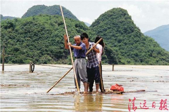 5月22至23日,阳山县遭遇百年一遇洪灾,太平镇白莲片区湖洞、白莲、大清3个行政村25个自然村被洪水浸泡,由于排水不畅,四周形成一个南北宽约1.5公里、东西纵深约5.2公里、面积约7平方公里、容量约3000万立方米的椭圆形水面,最深水位达15米,形成一个“堰塞湖”,4000余名村民被困其中。