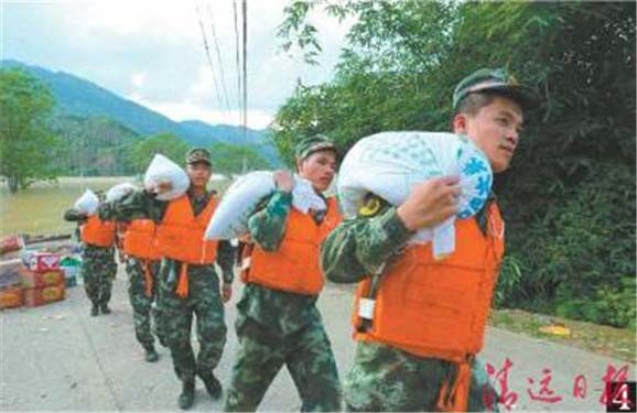 佛冈“长大”公司老板余云建,不顾公司遭水毁损失,开来厂里的铲车和大货车帮忙转移被困的400多师生;清新龙颈镇,黄氏兄弟不顾自家工厂损失了10万元,在暴雨中摸黑划艇救人;英德浛洸镇,有村支书翻山涉水进入被困村庄;佛冈石角镇,有村干部在敲响预警铜锣时,自己的妻子险些被大水冲走……