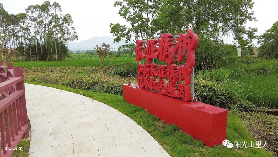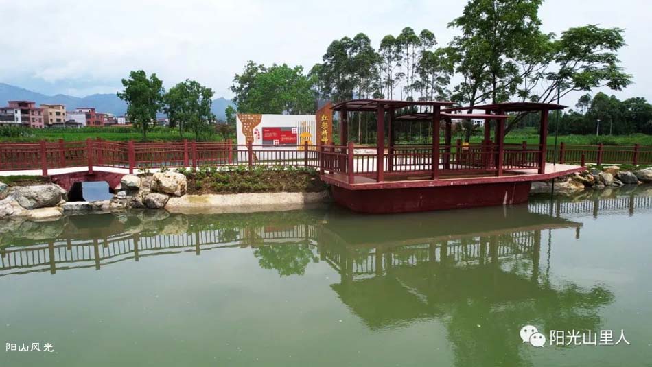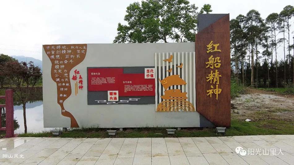 沿着村委会侧面的池塘边漫步,一边是微风拂面的田园风景,另一边是充满激情与回忆的“长征精神”、“红船精神”、“红桥精神”、“井冈山精神”为主题的红色元素环绕着池塘边一一展示,其中一条大型的红船雕塑矗立在池塘边,从航拍镜头下格外的壮观。红船精神是以开天辟地、敢为人先的首创精神,坚定理想、百折不挠的奋斗精神,立党为公、忠诚为民的奉献精神指引我们扬帆起航。一百年来,我们党从红船起步,从小到大、从弱到强,攻克了一个又一个看似不可能攻克的难关,创造了一个又一个彪炳史册的人间奇迹,小小红船成长为承载着14亿多中国人民希望的巍巍巨轮。