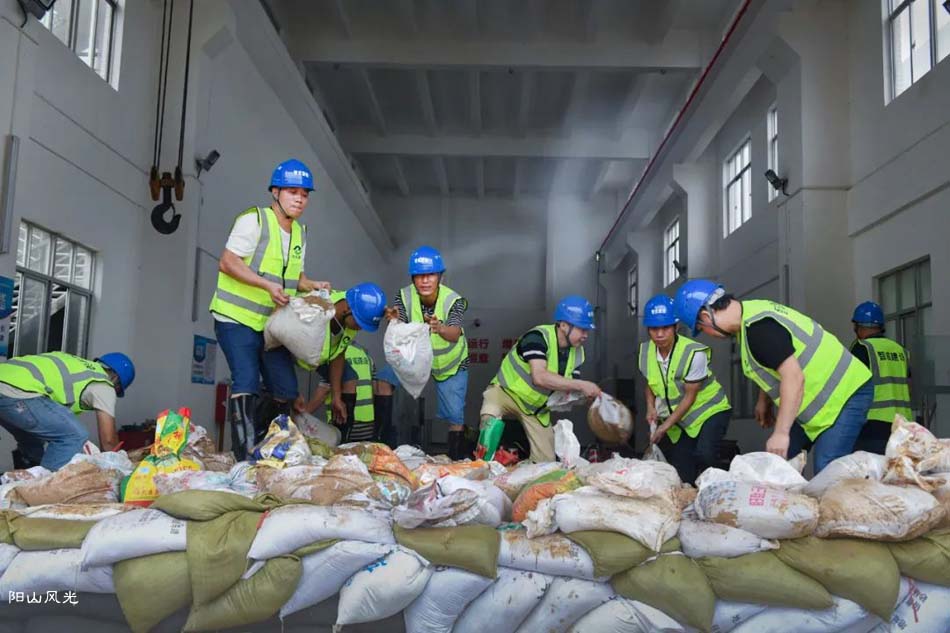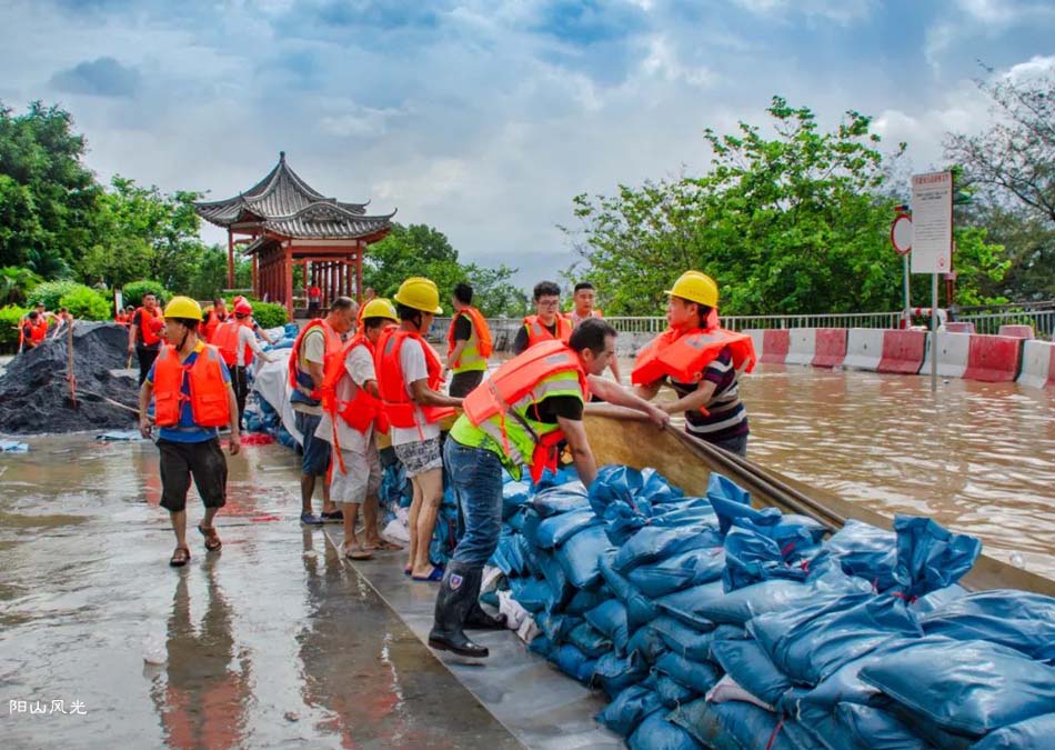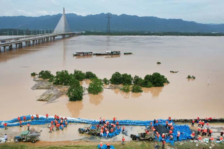 ▲2022年6月22日,英德江湾大桥防洪堤溢水抢险。摄影|黄锦新