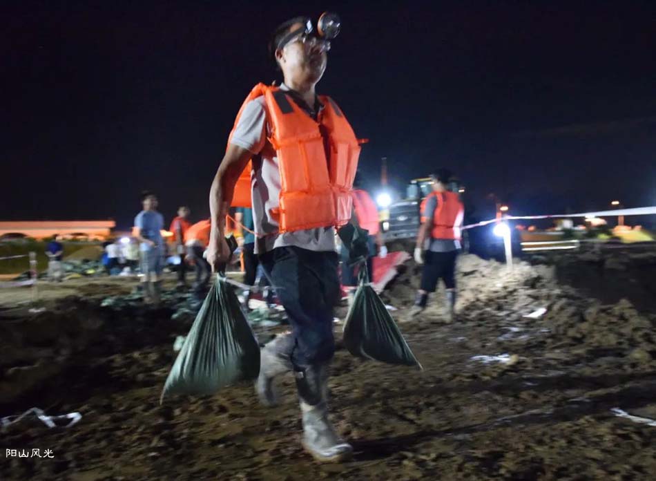 ▲2022年6月22日晚,大燕河抗洪。摄影|叶灿新