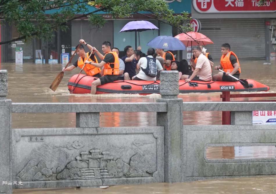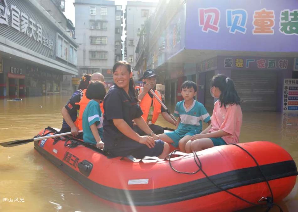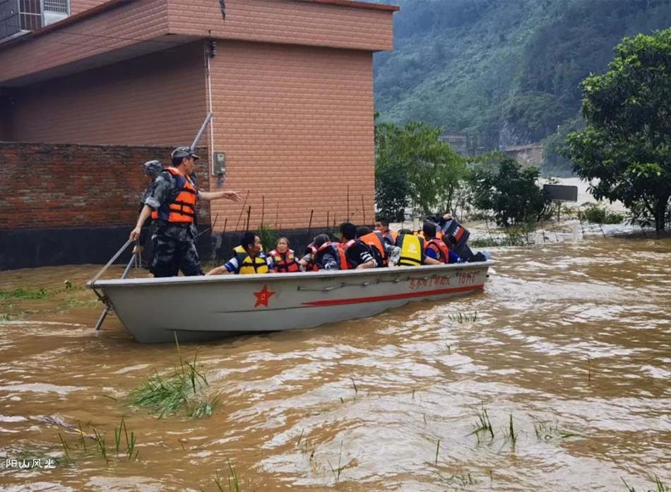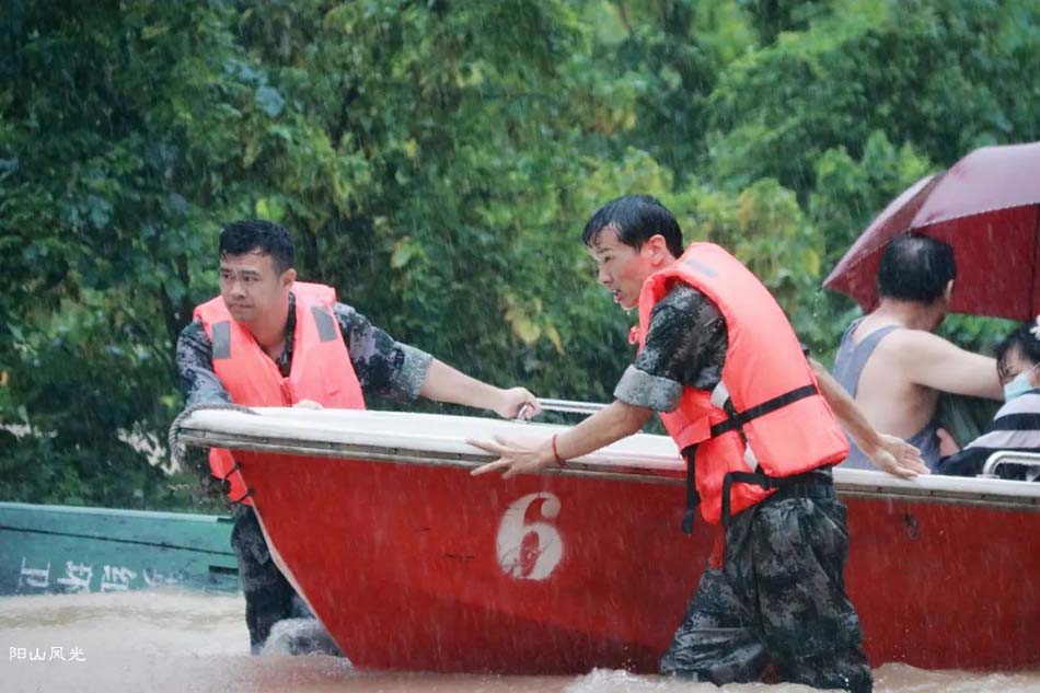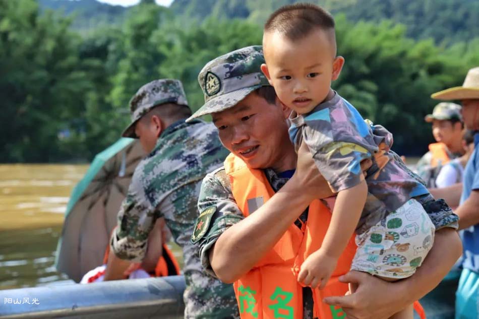 ▲2022年6月21日,清远武警官兵转移阳山县城受灾群众。摄影|许明辉