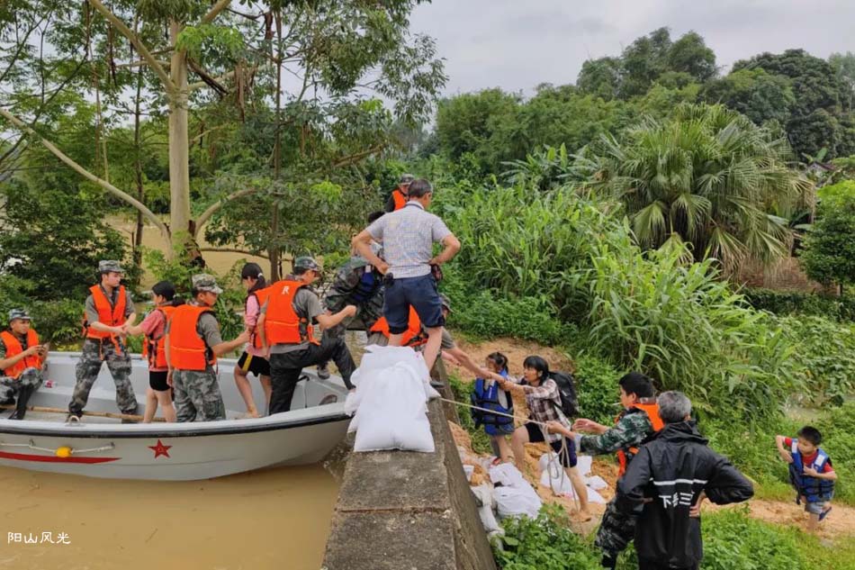 ▲2022年6月20日,佛冈县民兵应急分队在龙山镇下岳村转移群众。摄影|黄超贤