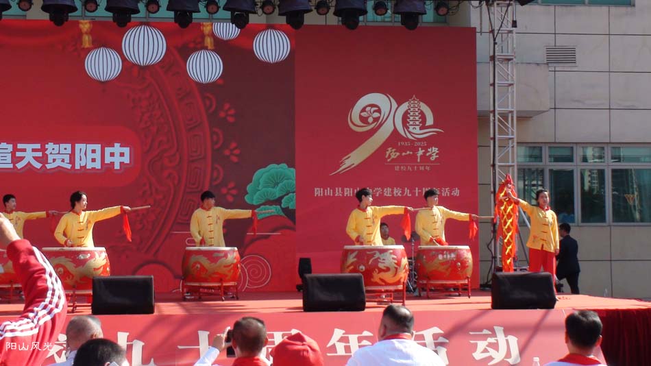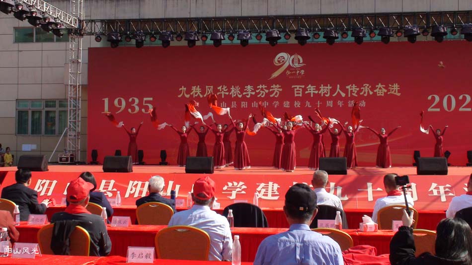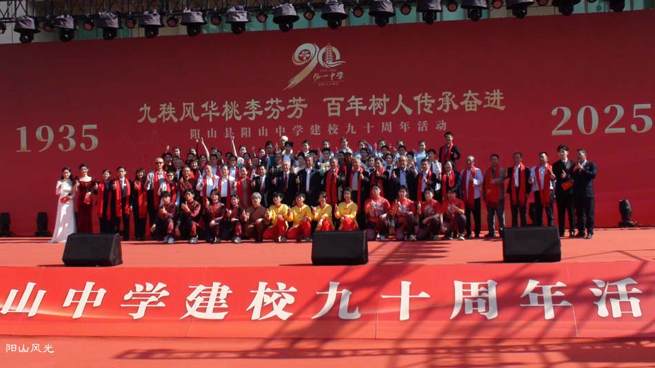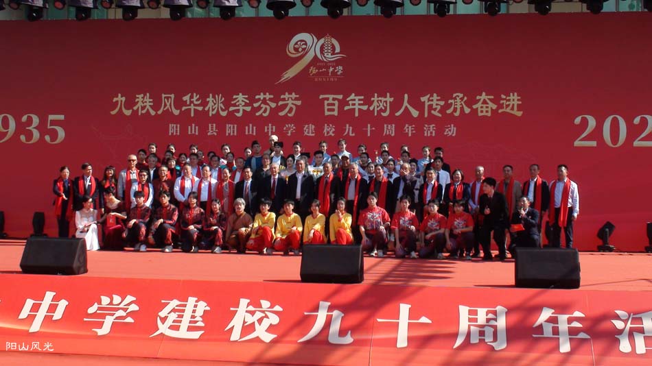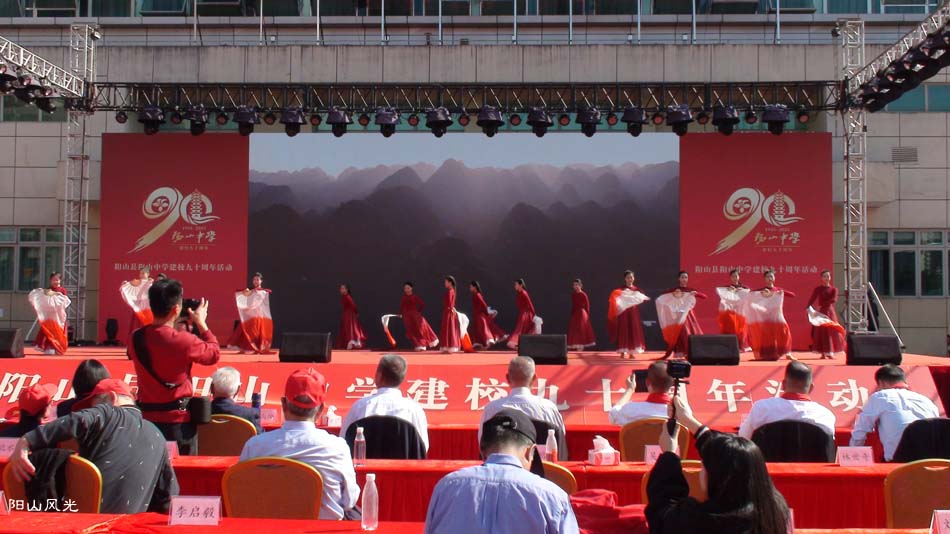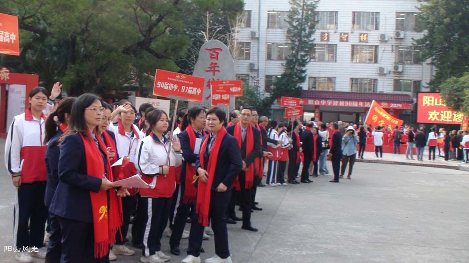 2025年12月20日,阳山中学举办建校90周年校庆活动。老校友们欢聚一堂庆祝母校90岁生日,学生们演出了丰富的文艺节目。晚上还有音乐会。