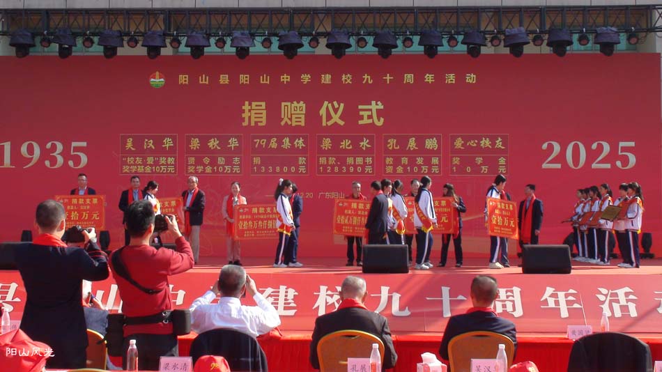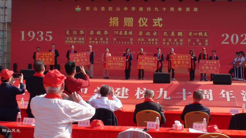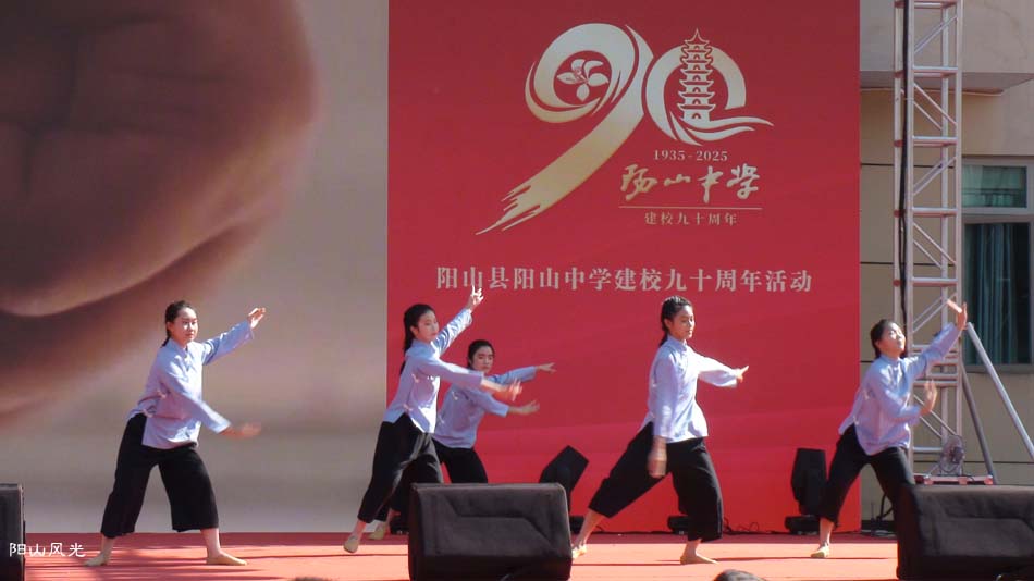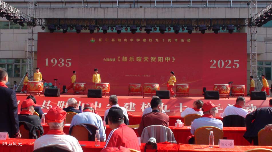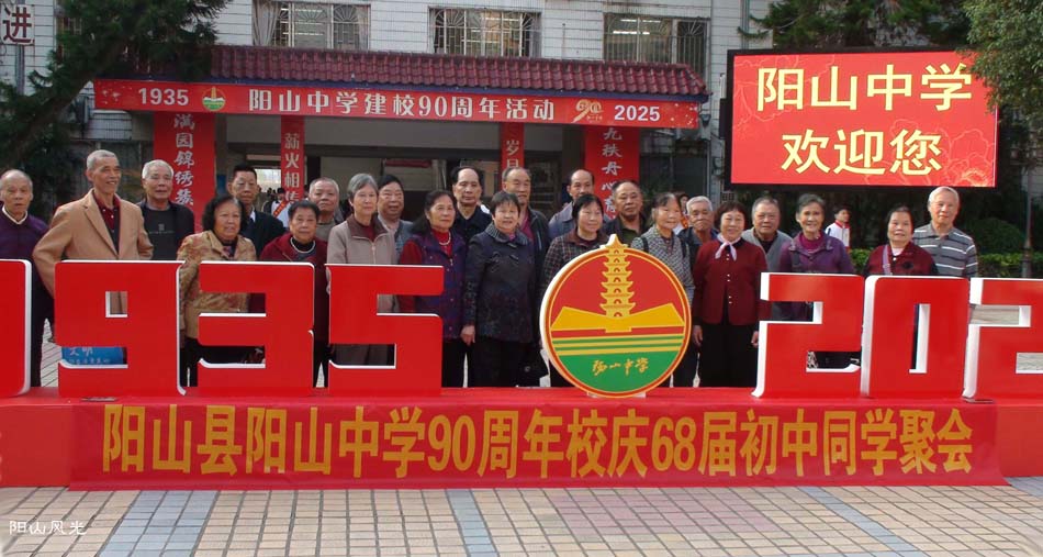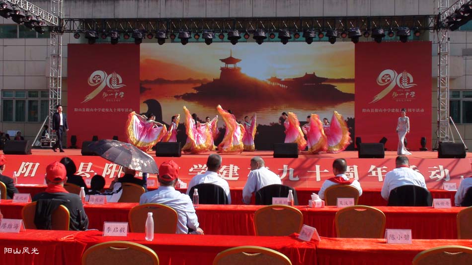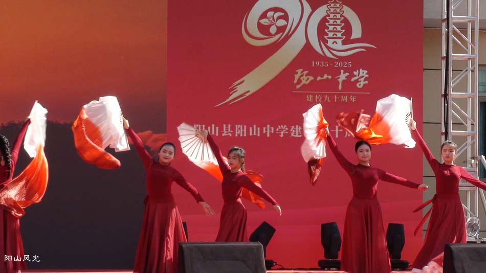 2025年12月20日,阳山中学举办建校90周年校庆活动。老校友们欢聚一堂庆祝母校90岁生日,学生们演出了丰富的文艺节目。晚上还有音乐会。