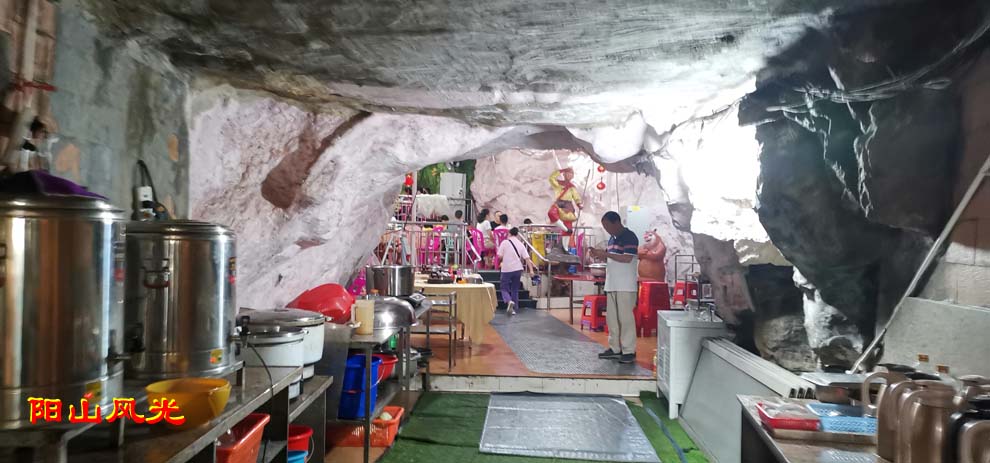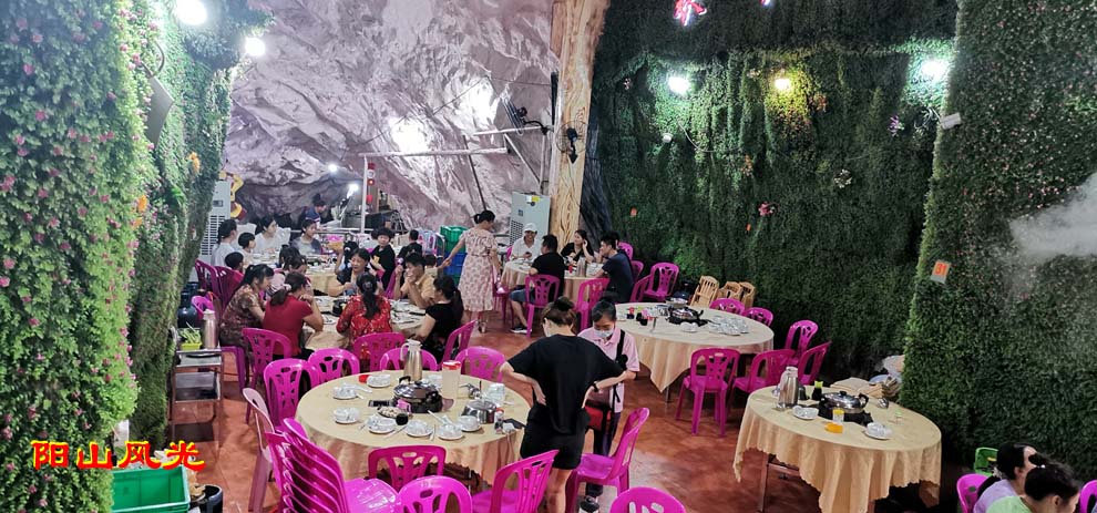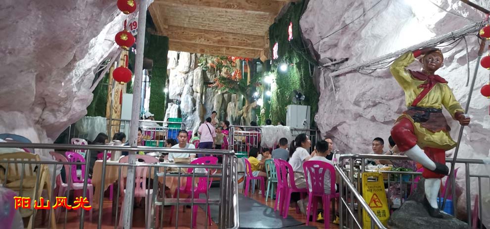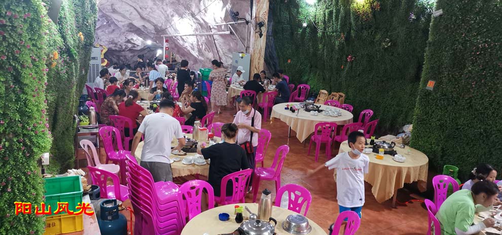 水帘洞饭店位于文塔路。水帘洞饭店就在水帘洞门口,位于阳山县城文塔路文塔山脚下。据说是阳山有色金属有限公司东坑矿业社采石场,为了保护生态环境,响应县领导钻山采石料的号召。经过三十年的努力开采石料,形成了一千米深,数万平方米面积的洞中有洞,洞洞相连的奇特景观。现成了阳山著名的避暑胜地。