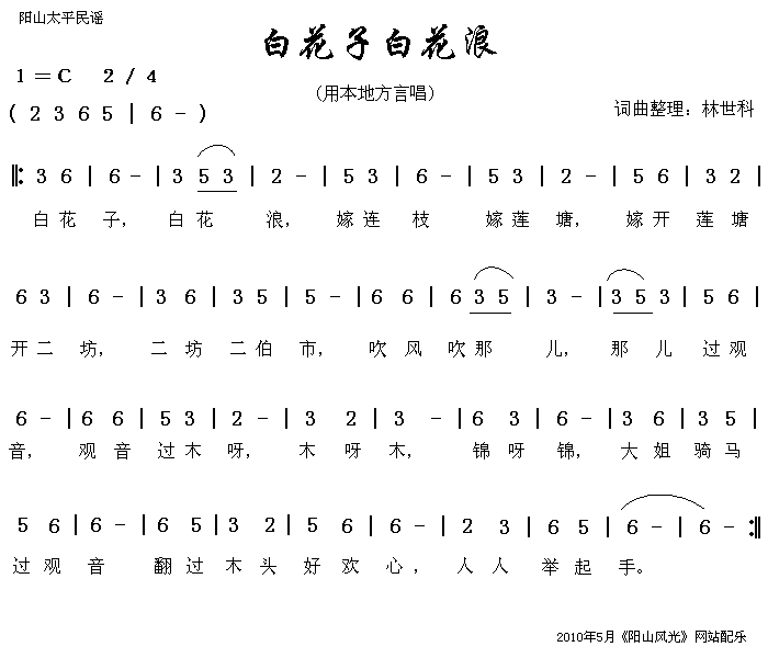 太平童谣《白花子白花浪》(梁淼萍唱)_阳山风光_民间音乐室