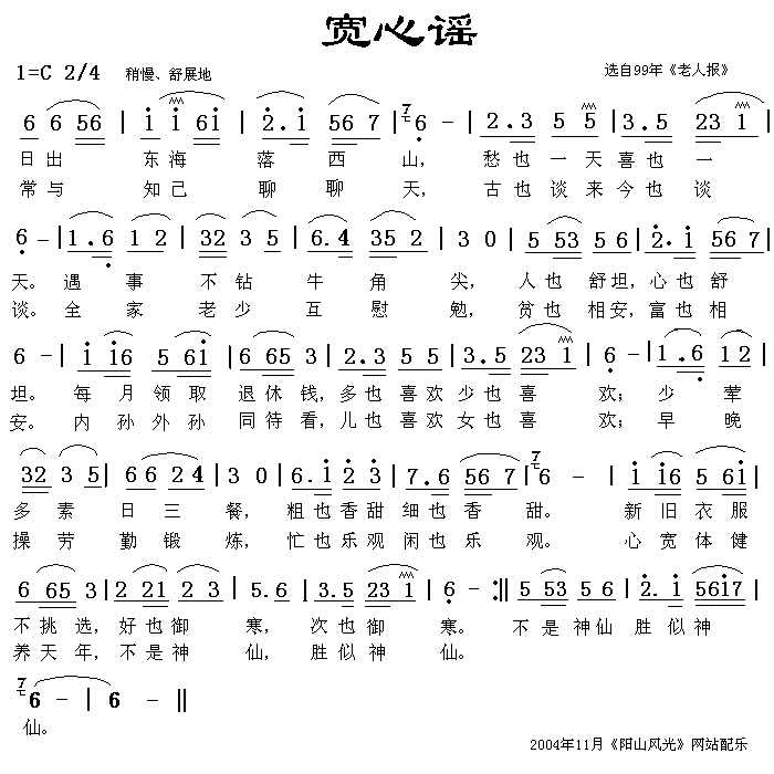 请您跟着乐曲唱歌词,唱熟了会使有良好的心态过日子