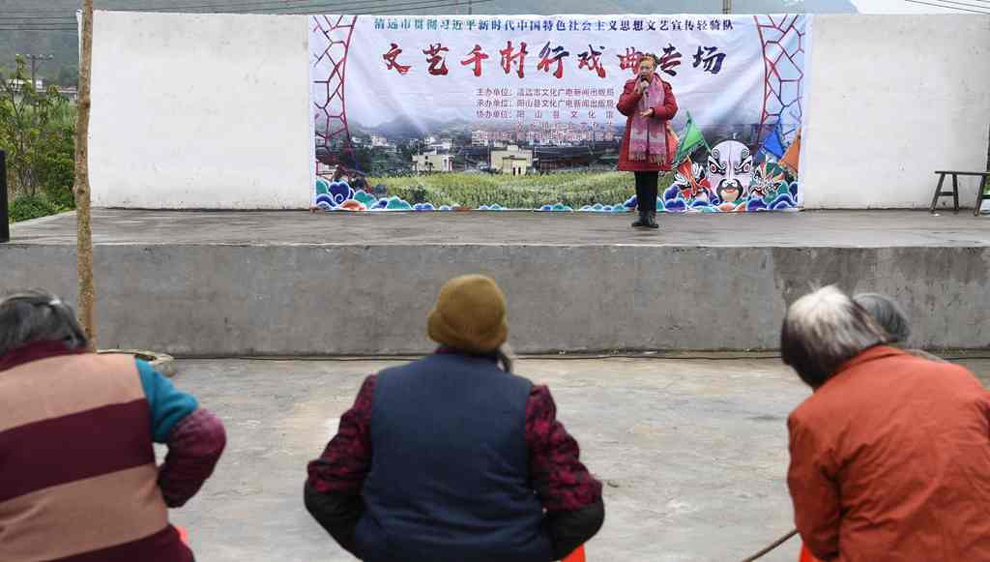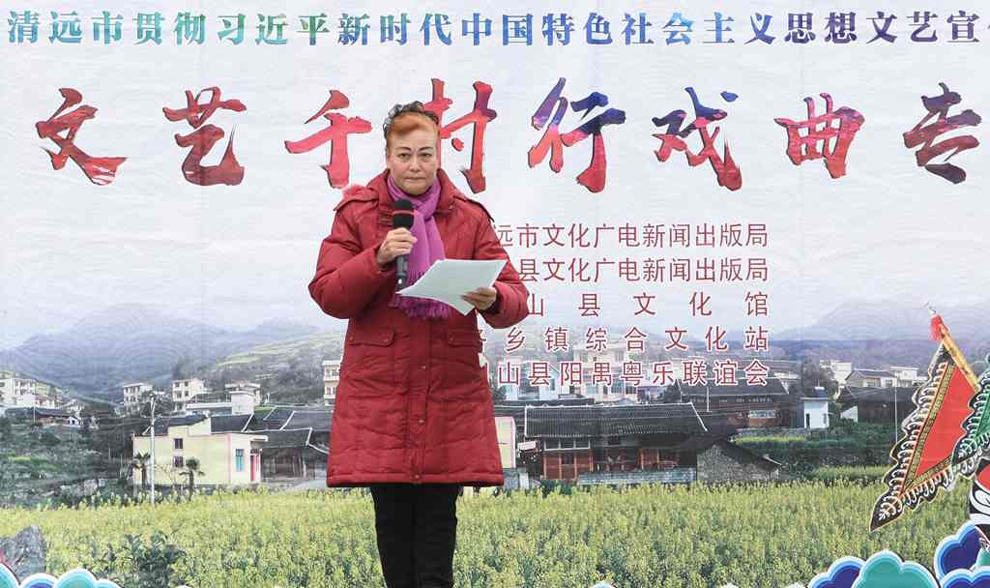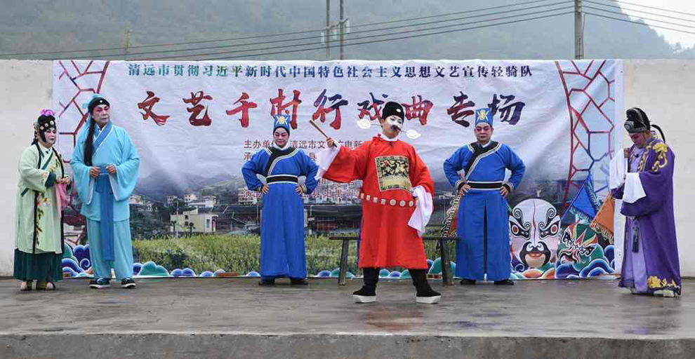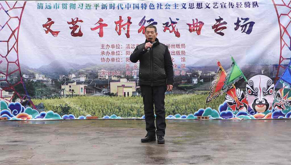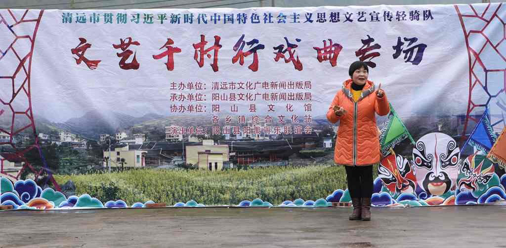 为宣传贯彻党的十九大会议精神,普及和传承中华优秀传统文化,繁荣农村戏曲市场,根据清远市文化广电新闻出版局《关于做好宣传习近平新时代中国特色社会主义思想文艺轻骑队暨清远市民生十件实事—戏曲进农村演出相关工作的通知》(清文通【2018】59号)精神,紧紧围绕县委、县政府实施乡村振兴战略“三个全域两大攻坚”系列行动,阳山县文化馆组织阳山县阳禺粤乐联谊会送戏下乡深入本县农村基层开展“贯彻习近平新时代中国特色社会主义思想文艺轻骑队—文艺千村行戏曲专场”演出活动,用曲艺的清歌雅韵把欢乐带给现场的父老乡亲们,受到当地群众的热烈欢迎。主办单位:清远市文化广电新闻出版局。承办单位:阳山县文化广电新闻出版局,阳山县文化馆,各乡镇综合文化站。演出单位:阳山县阳禺粤乐联谊会。演出时间:2018年12月13日上午,演出地点:阳山县 岭背镇茄龙村。